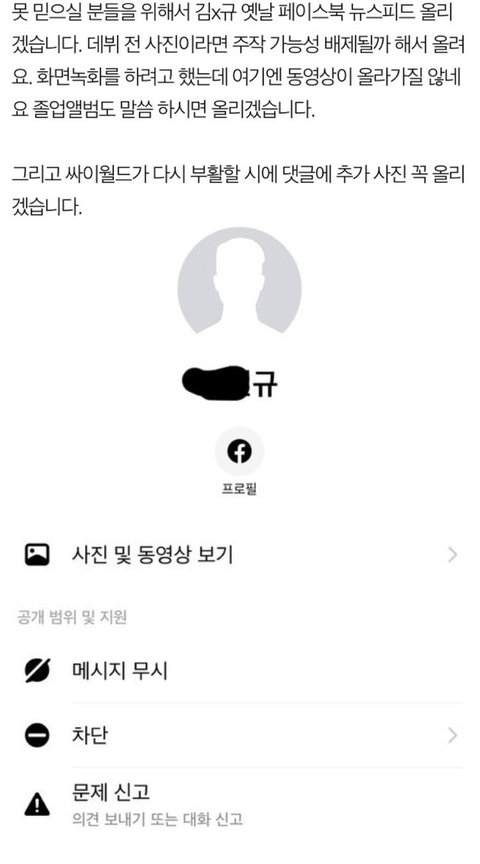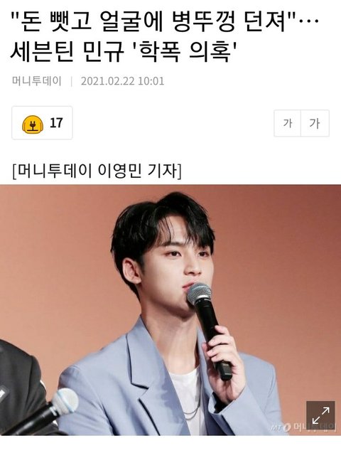 야 너네들 다 확정짓지 마셈 아직 기사말곤 아무것도 안나온 상태임 만약에 아니면 어쩌려고 이럼? 폭로글 말도 돌려서 쓴곳도 이상하고 갑자기 삭제한것도 이상한데.. 그렇다고 무작정 세븐틴 민규 측 믿을수도 없는 상황이고.. 그냥 가만히 닥치고 있는게 답이다..