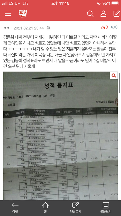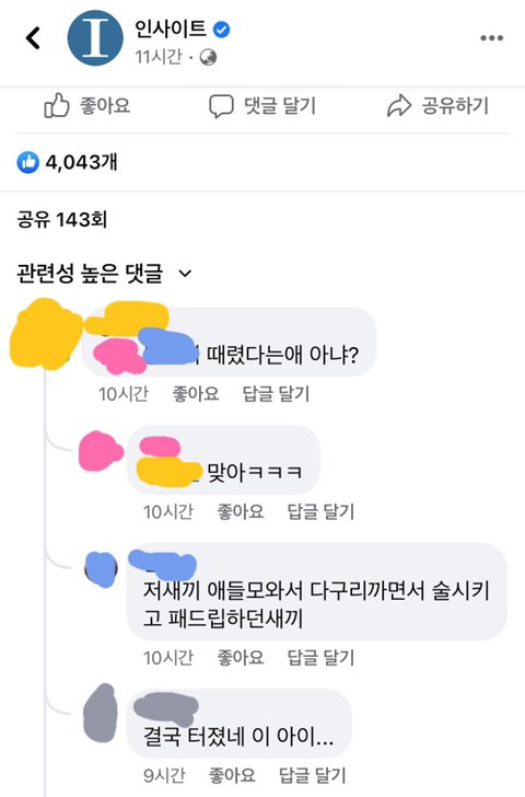 너가 학폭 안해서 쉬쉬한게 아니라 다들 신상 밝히기싫고 무서워서 안 터뜨린거야.... ㅎㅎ....뭐하러 얼굴까고 실명까는 페북에서 저러겠어요 애들괴롭히고때린게 일상이면서 기억안나?오죽하면 지금 내친구들 통해서 나보고 제보해서 올려달라하겠니..