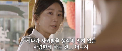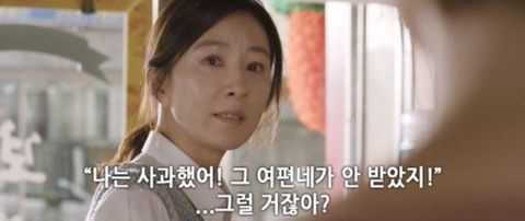 이 대사가 정말 가슴에 와서 꽂히더라~ 그리고 나도 저 대사 똑같이 전남편엄마한테 해줬지~ 상대방이 받고싶어하지 않는 사과 할 생각 하지 마시라고 어줍잖은 사과 하시고는 나는 사과했는데 며느리년이 안 받아줬어!!! 하시면서 피해자 가해자 만드실꺼 아니냐고 그러니 나 불러내지 마시고 깔끔하게 당신 아들 데려다가 오순도순 사시라고 나는 당신 아들하고 헤어질꺼라고 했죠...