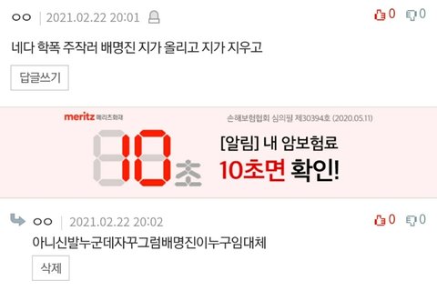 내가 글 올리면 자꾸 이러면서 댓글 다는데 대체 뭐야...?? 나 판 오늘 처음 깔았어...