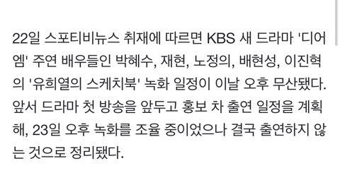 디어엠 유희열의 스케치북 출연도 무산됐음