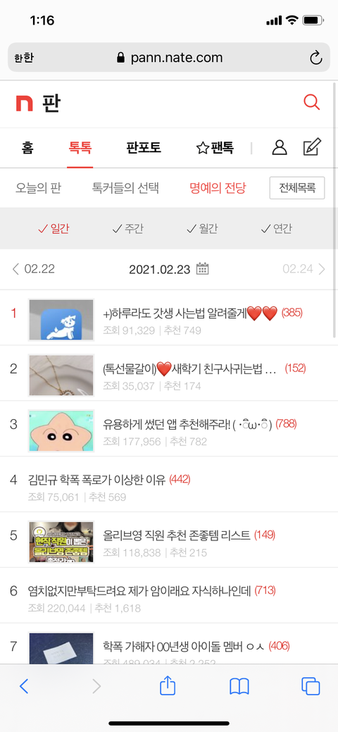 오 ㅁㅊ 명예의 전당+톡선 대박❤️❤️❤️ 얘들아 고마웡