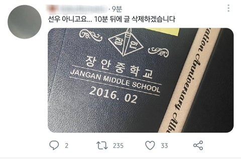 졸업앨범 동창 인증 글 선우가 쓴 거 아니냐고 하는데 선우 축구 때문에 중3 때 전학가서 장안중 앨범 없어 또 글 쓴 동창이 민증까지 까고 인증했어 주민등록번호 앞자리 3은 남자 4가 여자인 건 다들 알고있지?