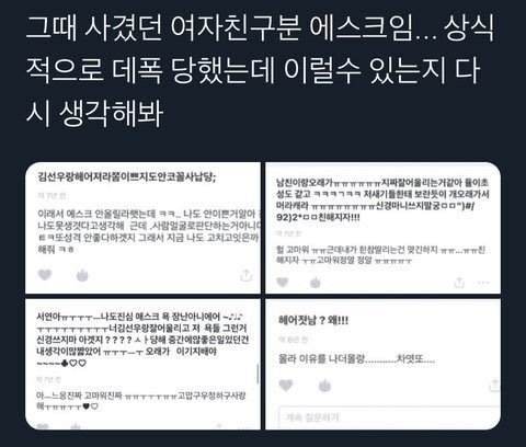 이건 선우랑 그 당시 사겼던 전 여친 에스크 내용이야 만약에 진짜로 선우가 데이트폭력을 해서 헤어진거라면 전 여친이 저렇게 얘기할 수 있을까?