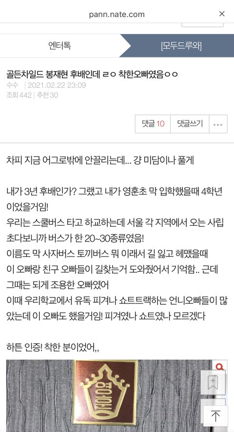 봉재현 미담봐
