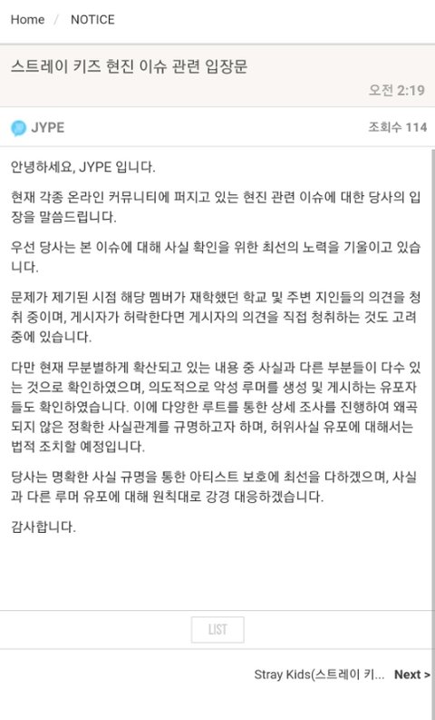 스트레이키즈 현진 제이와이피 입장문 뜸