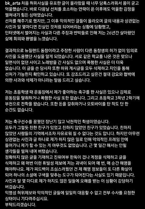 조병규 인스타에 학폭에 대한 입장 표명 올라옴