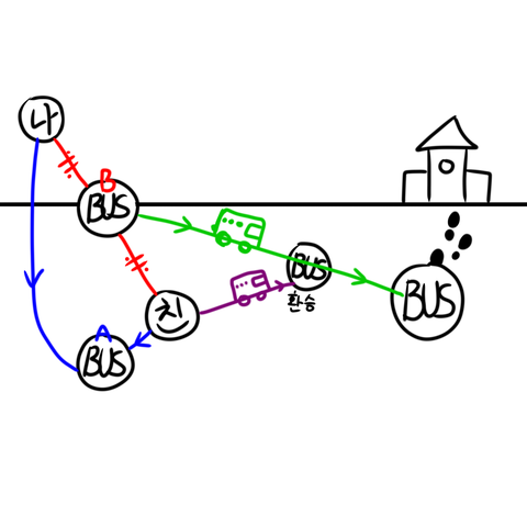 2. 보라버스 타고 중간에 내려서 초록버스로 환승