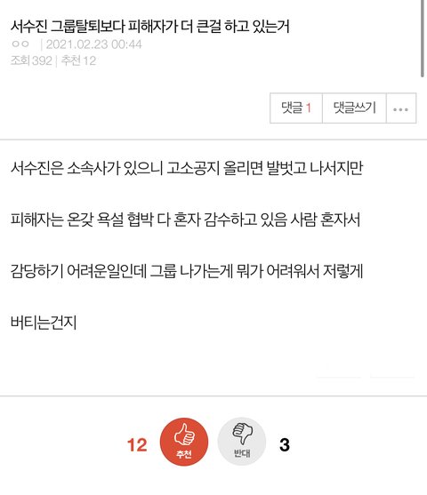 아래 추가로 2차 가해자 분들도 가족이 있다면 바르게 사세요...전부는 아니지만 이제 그만좀 하시라고 첨부 드립니다...----------------------------------------------------------------------------------------------