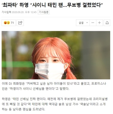 샤이니 태민이 자기 롤모델 또는 롤모델은 아니라도 팬이라 밝혀진 아이돌들