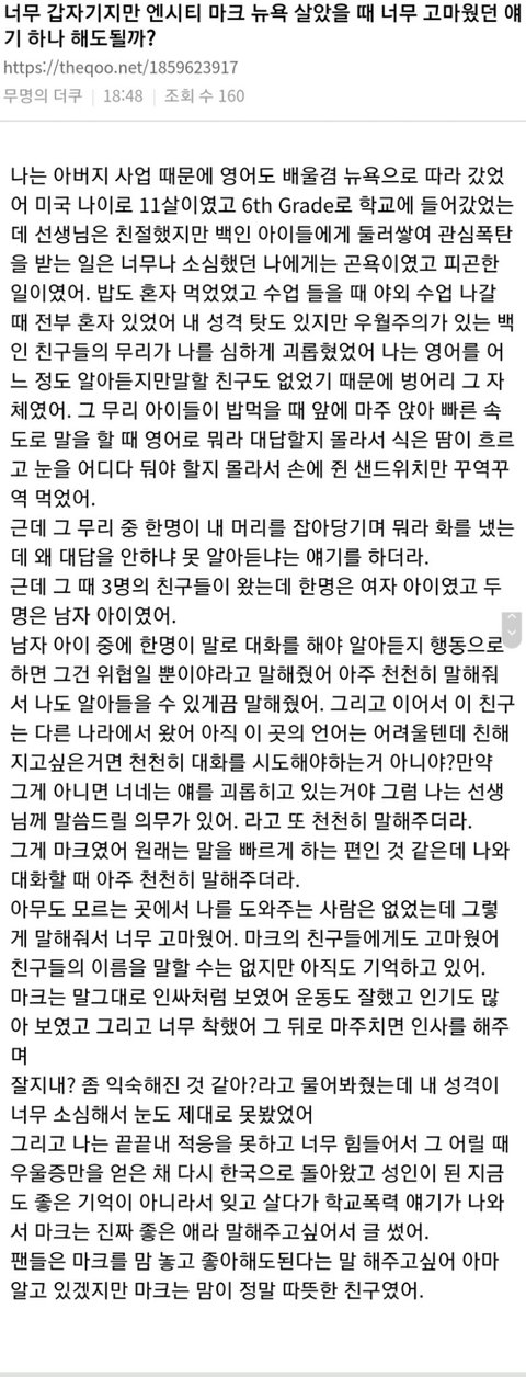 타싸에 올라온 마크 일화래,,인증은 없으니깐 걍 쓰루해도 되는데 마크라면 정말 이랬을게 분명해..ㅎ