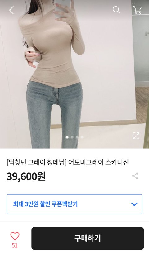 보정도 보정인데 제발 옷좀 제대로 보여줬으면... 티셔츠같은것만봐도 백번 양보해서 패딩걸치고 찍는건 그렇다쳐도 기장이 보고싶은데 바지안으로 죄다 들어가있고 모델 셀카는 도대체 왜....?
