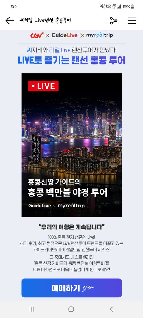 CGV에서 랜선투어 한다는데 홍콩!