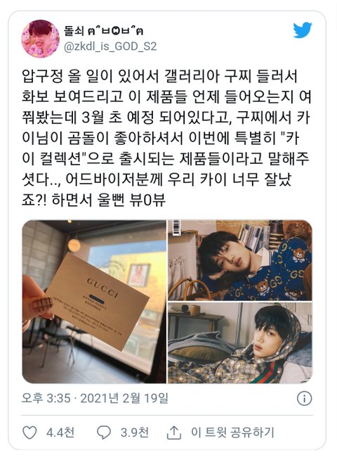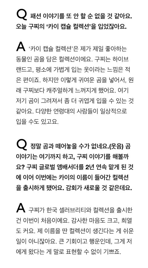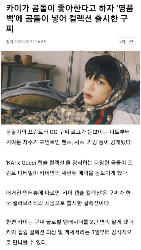 구찌의 카이 사랑은 알고있었지만 곰돌이가 별명인 카이를 위해 한국 셀럽 최초로 카이 컬렉션까지 낸 구찌