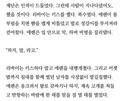 지금 몇 번째 영업하는지 모르겠는데 사사님 죽어 마땅한 사람들 봐줘... 에렌 막 대하는 리바이 너무 좋음 ㅅㅂ 어젯밤까지 침대를 함께 썼던 남자를 사정없이 발길질했다는 구절 너무 좋아 ㅅㅂ 이 사람 캐해 천재임