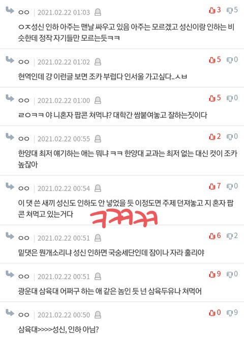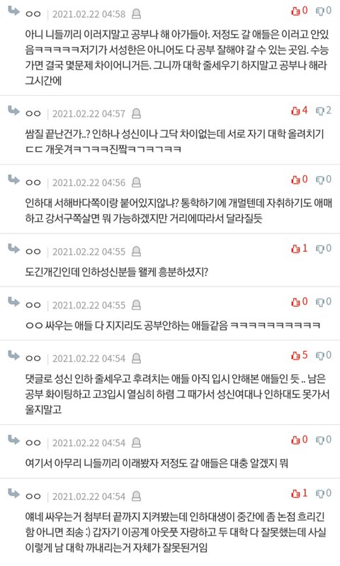 인하대랑 성신여대랑 어제 싸웠잖아ㅋㅋㅋ 근데 댓글들 보다가ㅋㅋㅋㅋ