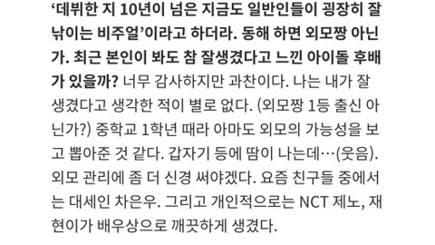 재현 제노를 배우상으로 깔끔하게 생겼다고