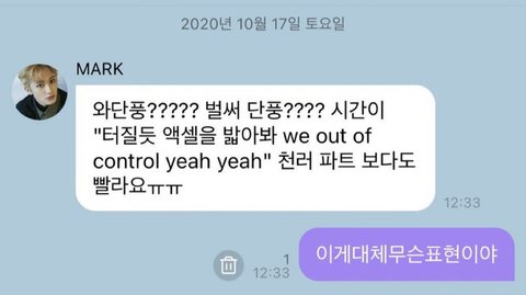 시간이 " 터질듯 액셀을 밟아봐 we out of control yeah yeah " 천러 파트 보다도 빨라요ㅠㅠ