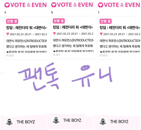 킹덤 시작했다는 소식 듣고 더비들 생각나서 작지만 투표인증 들고 왔어요!! 이번 킹덤 지치지 말고 끝까지 포기하지 말구 힘내셨으면 좋겠어요!! 저를 포함한 많은 분들이 정말 많이 응원하고 있으니까 끝까지 화이팅화이팅❤