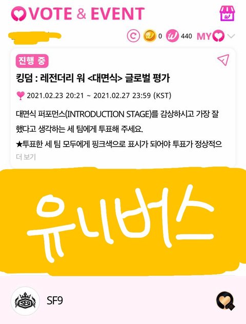 펜타곤팬 유니버스입니다! 가두리양식 에셒구분들 서바이벌 나간다는 소식듣고 투표하고왔어요 ! 앗 그리고 3월에 저희 컴백하는데 많관부 부탁드리겠습니다,,ㅜ 킹덤 홧팅하세요 응원하겠습니다 ❤️