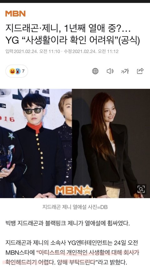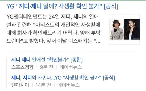 지디•제니 열애설 YG반응ㅋㅋㅋㅋㅋ