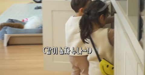 첫째 나겸이랑, 둘째 나온이가 재미있게 노는거 보고