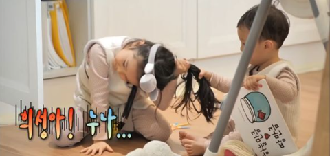 희성이가 나겸이 머리를 당김...