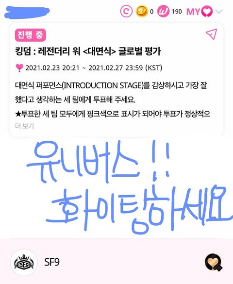 투표하고왔어여 유니버스와 판타지는 이웃.. 가두리양식 판타지 킹덤 화이팅입니다!