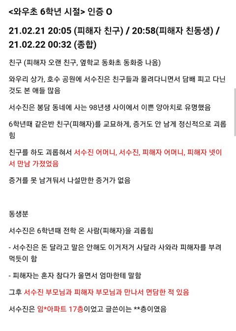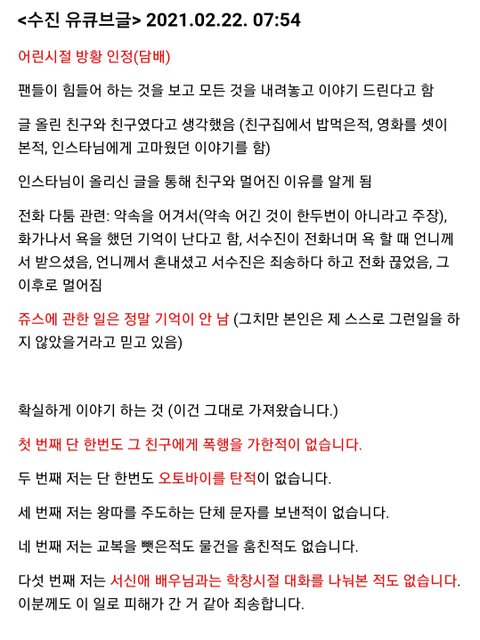 - 단 한번도 그 친구에게?: 서수진의 '첫째 단한번도 그 친구에게 폭행을 가한적이 없습니다.'