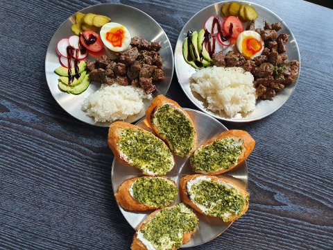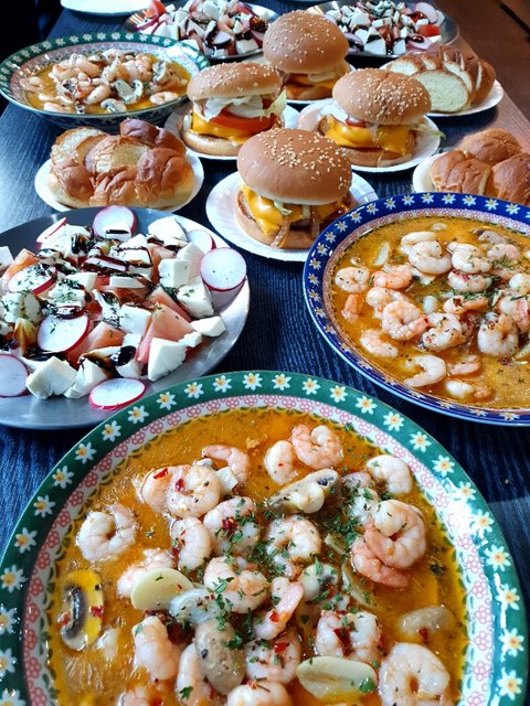 수제햄버거와 그 외 샐러드, 감바스등인데..