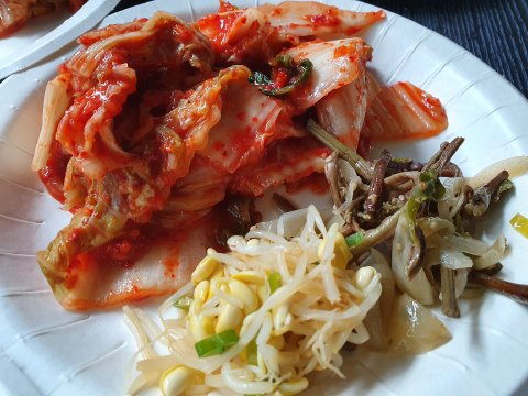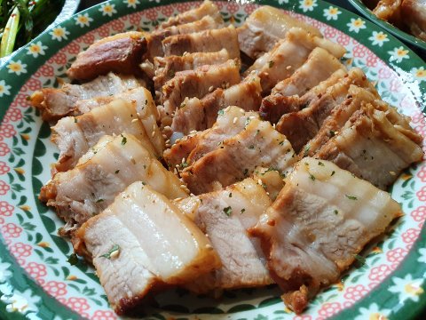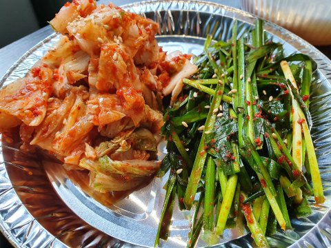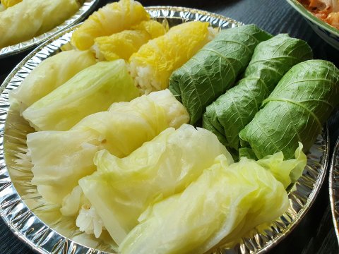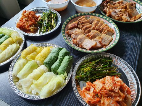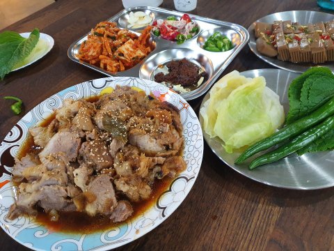 매콤한 배추된장국, 훈제오리구이,양배추쌈
