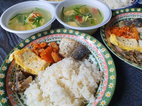 시원칼칼한 황태콩나물국과 삼치구이..반찬들