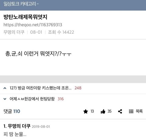 ++) 방탄소년단이 커버한 곡이 너무 좋아서 많은 사람들이 들으면 좋을거 같아서 올린 글임요