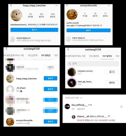 첫번째 - 민아 언니를 제외한 멤버분들께서 비공계 게정을 만드시고 친목다지면서 민아 언니를 소외시키셨고 오피셜계정으로 민아 언니 인스타에 욕 댓글을 달으셨습니다
