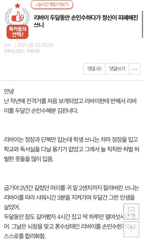 저 글은 내가 정말 제정신이 아니었을 때 써서 중간 중간 말투도 이상하고 글이 난장판인데 이번에 좀 정리해서 쓸게