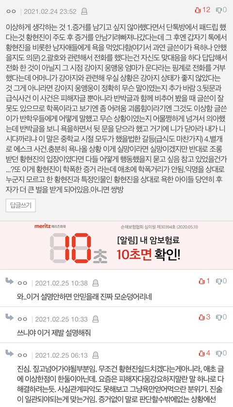 진짜 이런 글은 이제 관심도 없구나. 학폭 이슈가 확실히 1-2일 끓고 말거 같긴 했는데.... 그냥 지목 당한 사람들은 이미지만 폭망하고 허무하다..