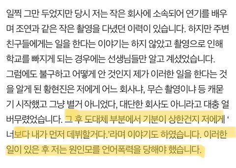 ㅅㅈ은 진짜 주장하는 쪽이 확고한데 ㅎㅈ은 첫 폭로글이 교묘히 말 바뀌고 처음부터 감정적호소 짙은 글에 오히려 반감이 생겼었음... 진상규명을 위해서 소속사도 범위를 넓혀 조사중이라 시간 오래 걸리는거 같음. 제대로 파헤칠 필요 있다고 생각함..