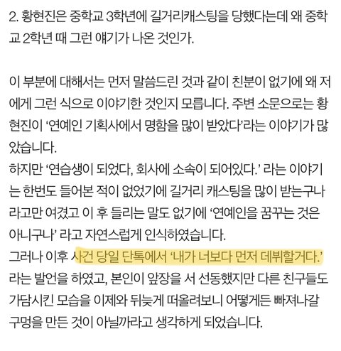 그러네 첫번째는 글쓴이한테 어디회사다니냐등 물어봐서 대충대답했더니 내가너보다먼저데뷔하겠단소리하고 그이후 원인모를 언어폭력을당했다는 주장이고. 두번째는 단톡방에서 내가너보다먼저데뷔하겠다 말했다는 주장이네? 시점다르긴하다 왜바뀐지는모르겠지만