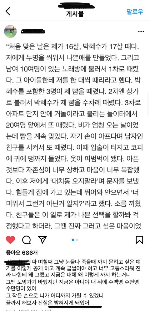 박혜수 피해자 인스타야. 마음 찢어질거 같다.