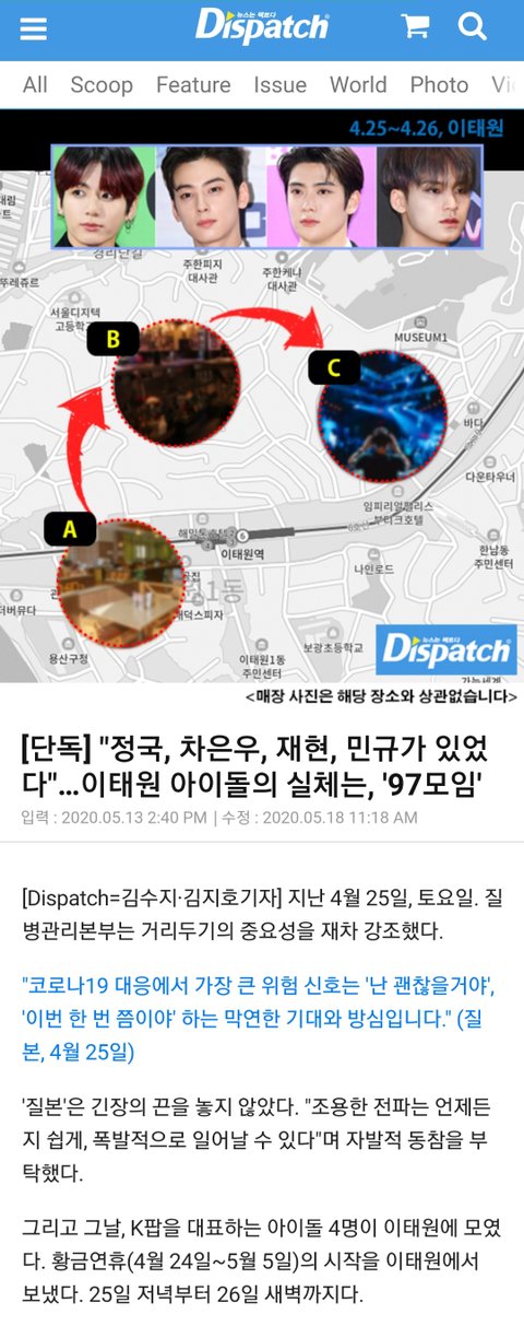 그때 당시에 확진자 1명 나왔을 때였고 정부에서도 경제 살리기 어쩌고 해서 외식 장려하던 시기에 친구들끼리 만나서 밥 먹고 맥주 한잔 하고 집갔더니 그게 디스패치에 뜸...ㅋㅋ