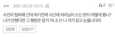 서x애의 대한 동창글 중 수진이가 한 것처럼 되는 것 같아 하나 더 말하겠습니다.
