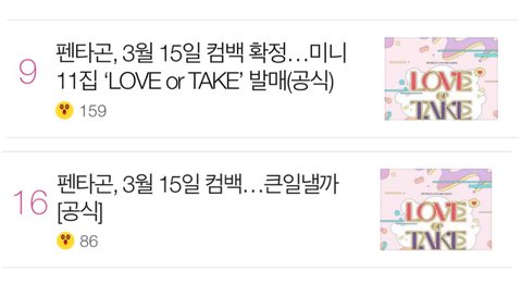 컴백 기사 추천이랑 공감 눌러서 올리자’