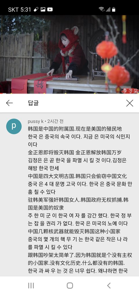 중국짱깨가 유튜브에다가 댓글로 한국을 까고있습니다.도와주세요.