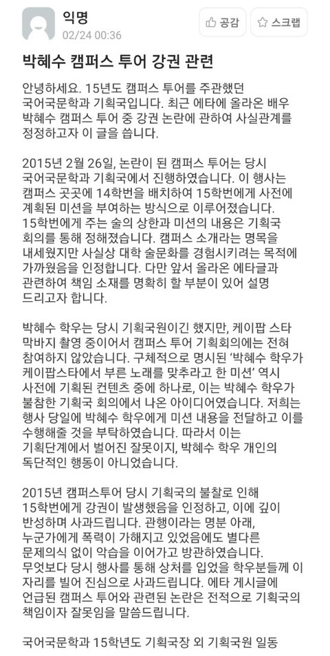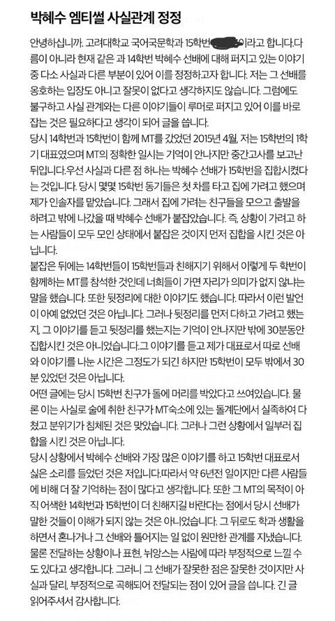비판하더라도 사실 아닌 부분은 정정하고 싶은 마음도 알아줬으면 좋겠음