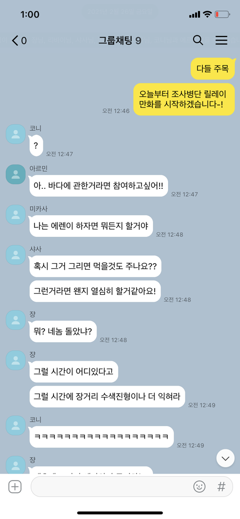 ㅋㅋㅋㅋㅋ 우리 새학기 때 판에서 하던 거