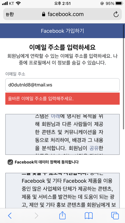 페북은 일회용메일로 가입못해ㅠ?