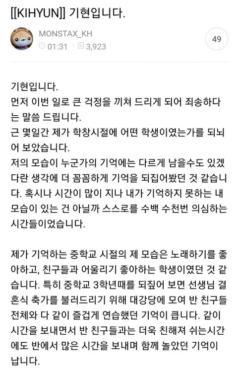 기현도 ㅅ,ㄷㅂ 는 인정했고 아직도 뉘우치고 있다고 했음