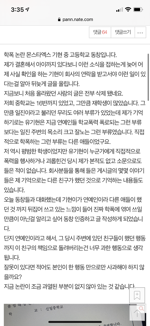 일단 기현 중 고등학교 동창이 쓴 글 꼭 읽어주라