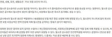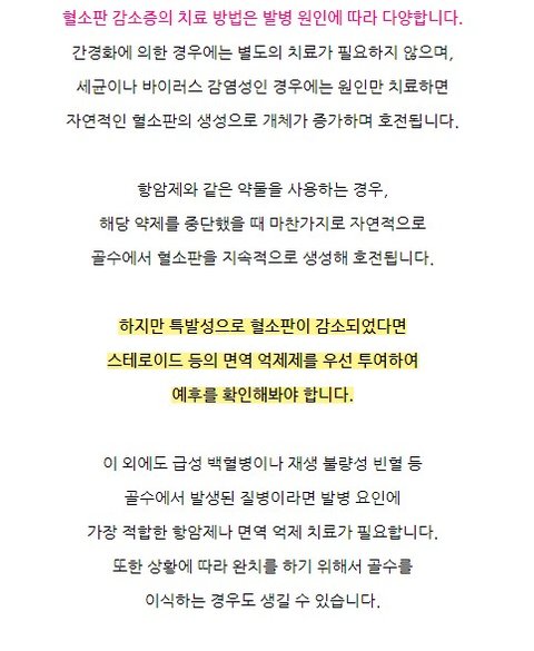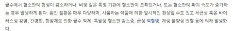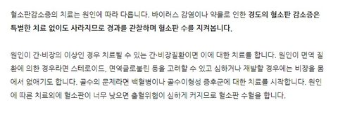 밑에 사진 순서는 엉망이지만 혈소판 감소증의 원인이나 치료방법에 대해 블로그,의학사전,지식백과 등등에서 찾아본 결과입니다.