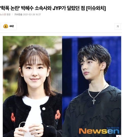 학폭 논란 박혜수 소속사와 현진 소속사 JYP가 달랐던 점